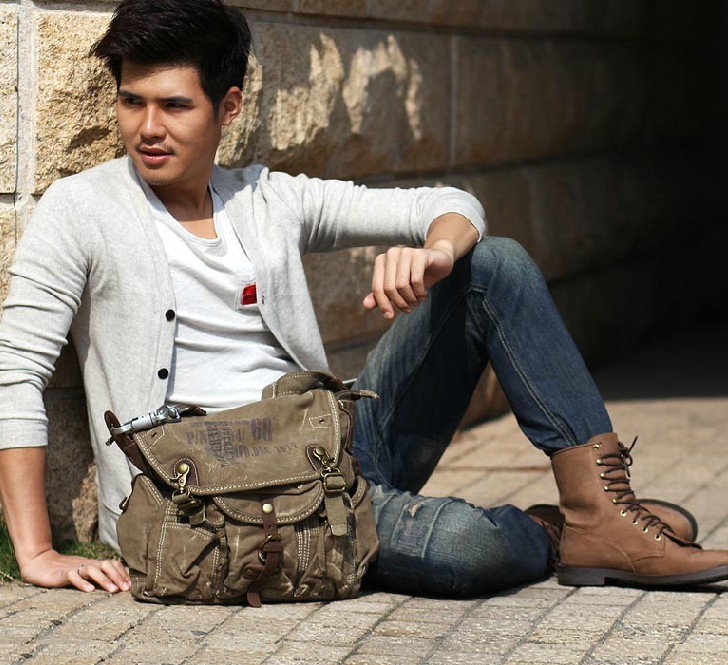 Vintage canvas messenger bags men, canvas travel shoulder bags for men